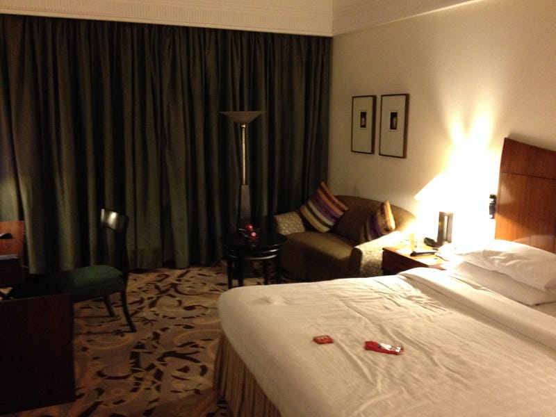 Not wanting to complicate arrival or departure when I travel, I never check bags. Trips to India and Europe are no exception. I have an old 22" American Tourister roller that is on it’s last legs, but it is large enough for the leave on Friday/Saturday night and return on Saturday morning routine that many Delhi commuters do. I’m actually thinking of something smaller. On my first flight I didn’t yet have status so it was a bit tight at the rear of the 777, but if you board early you usually have room to stuff in overhead, even for a larger bag. Our office in Noida is pretty casual so I usually pack 2 pairs of jeans (I wear one) a sampling of collared short-sleeve shirts and T-shirts and undergarments enough to last me about 4–5 days. I have the hotel do laundry on Wednesday. Bringing Ghiradelhi chocolate as gifts has become a tradition and I pack 2 cases of Cliff Bars (tucked in the crevices of my luggage) for the flight — and to eat while when I wake up in the middle of the night or if I get hungry and there is no safe snack food around apart from the hotel minibar. So yeah, I’m snack heavy and also you collagues will typically ask you to pick up a few things not available online, so that, too has become a tradition