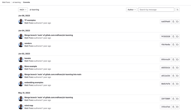 I hadn’t given ChatGPT a look-see even when I was on Twitter. While we waited to return to BWI, I started subscribing to a whole lot of podcasts and I began recording links at https://github.com/mdfranz/cheetsheetz/tree/main/ai and building my AI Learning repo that is still on my Gitlab site.