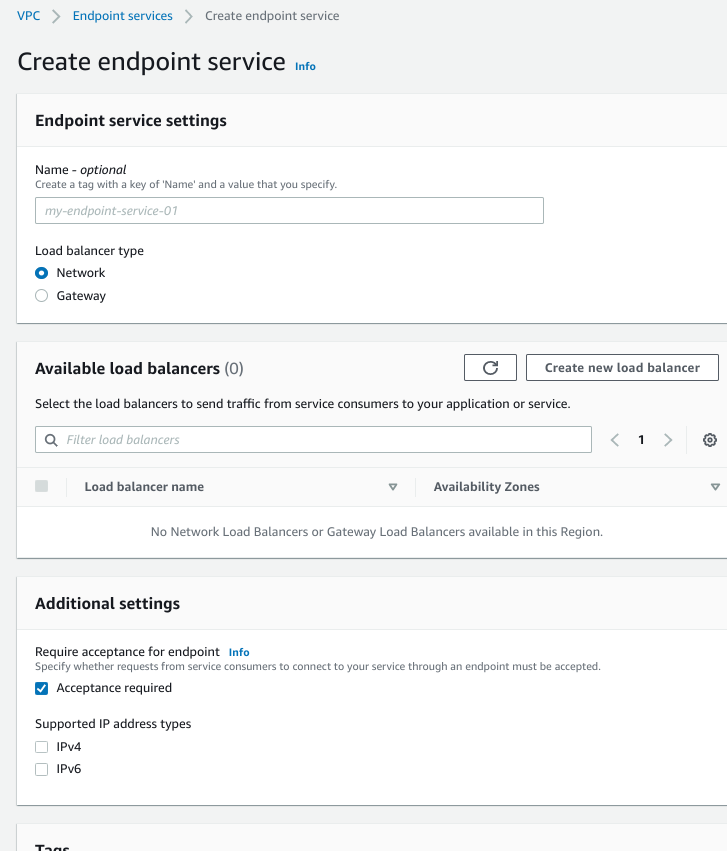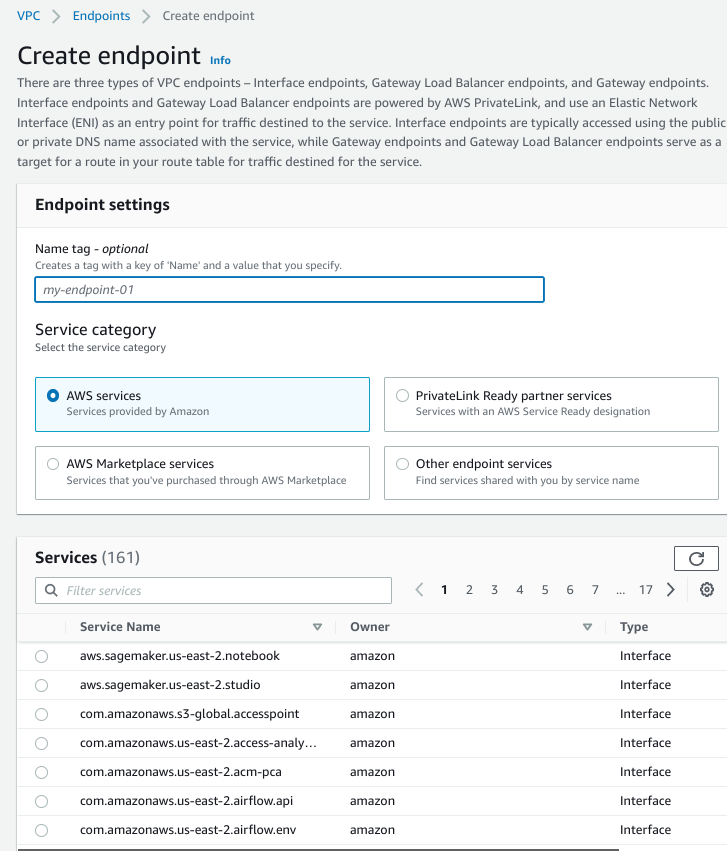 If you click on “Create Endpoint” you will see the following. For this blog, I’m focusing on “Other Endpoint Services.”