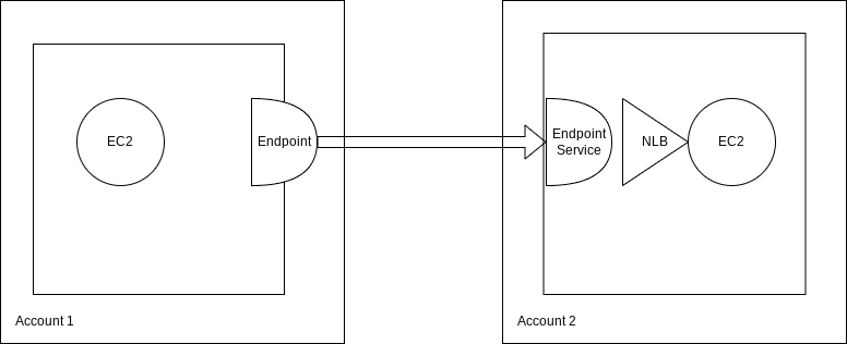 After you run that you should see the following resources created by service_provider code. The is includes an EC2 instances with no public IP and an NLB with the minimal security groups. It will copy your local SSH key to the remote instance as well.$ terraform state listaws_instance.plink_targetaws_key_pair.mykeyaws_lb.ssh_nlbaws_lb_listener.mylisteneraws_lb_target_group.ssh_nlb_targetaws_lb_target_group_attachment.testaws_security_group.instance_sgaws_vpc_endpoint_service.ssh_endpoint_svc