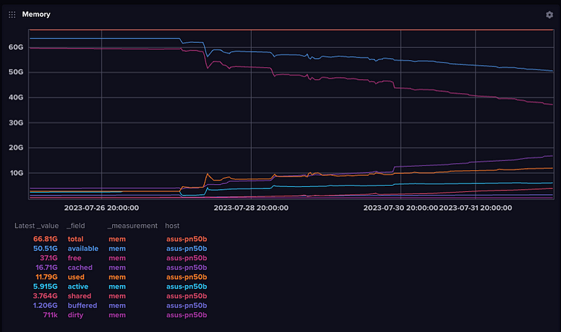 Probably because I missed having agents to install and metrics databases to maintain, at some point I installed InfluxDB 1.x on my home network on a 12" 3GB Latitude 4200 Laptop I bought off Craiglist a few years ago. It’s weird hardware with on board SSD and 1GB DIMM (and only 1 servicable slot) that I recently that I recently upgraded to 5GB so I can run more LXD containers on it.