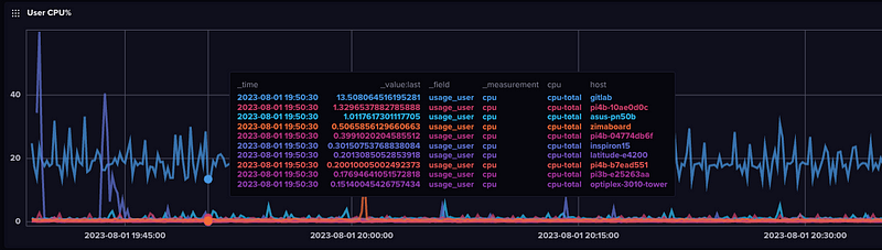 It was so cool to see data points start to show on a graph like stars coming out at night, one by one. You didn’t have to refresh your brower, even. This was such an improvement over the RRD-based tools over the late 2000s that had their origin in network management and required the image to be regenerated on the backend. I remember squinting at stupid graphs for each BSD box and the pre-generated graphs and there was no way to build any custom dashboard in the UI.
