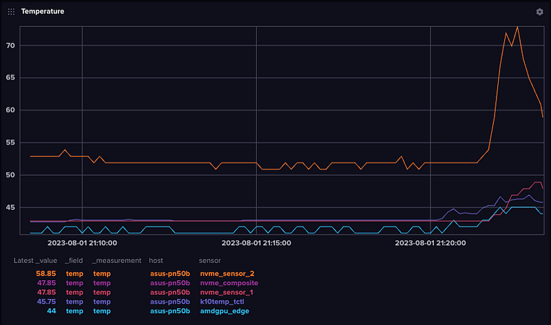 Most modern PCs, laptops, as well as embedded devices like Jetson Nanos, Raspberry Pi’s or other devices now have temperature sensors — or multiple sensors. On my PN50, the NVM device is consistently the hottest and you can see it spike when I updated packages last night.