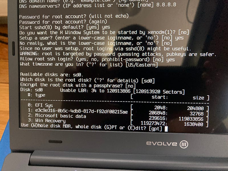 Although I have actually used NetBSD before really it is between Open and FreeBSD. Heads or Tails. I went with OpenBSD and booting from the AMI BIOS to the USB allowed me to get to the familiar installer and partitioning tool that really hasn’t changed much since the 1990s.