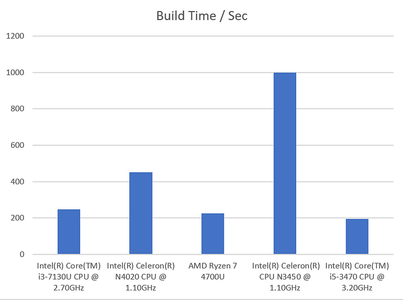 Based on building a TUI monitoring tool called Bottom the N3450 is only half as fast the the N4020 talking almost 1000 seconds to download and compile about 180 libraries and build the bottom binary.