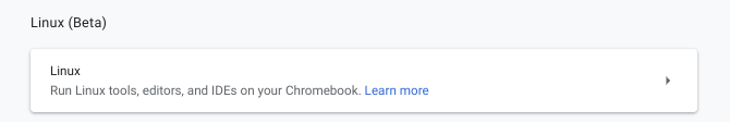 The good news that on newer ChromeBooks (including my two Dells) you can now run VMs and containers. See the docs for ChromeBooks that are supported. It is pretty straightforward to install the Linux shell and there are multiple online articles such as this one that show the steps. You’ll have to reboot but when you are done you will see “Linux files” and Linux (Beta) under settings.