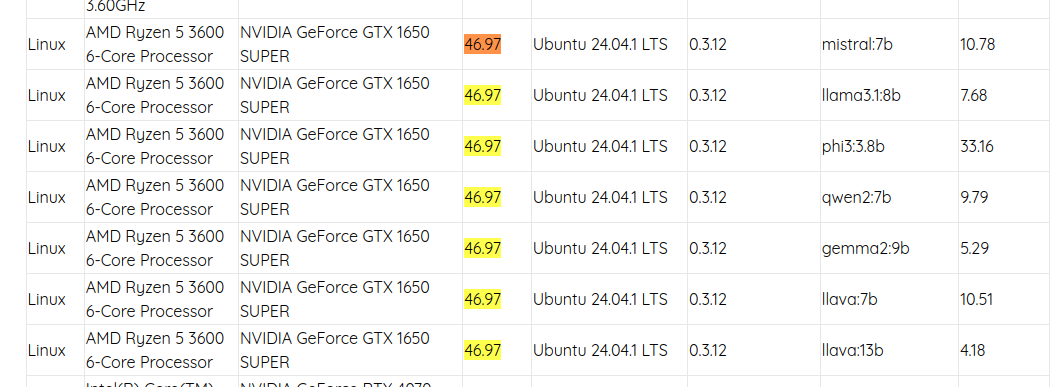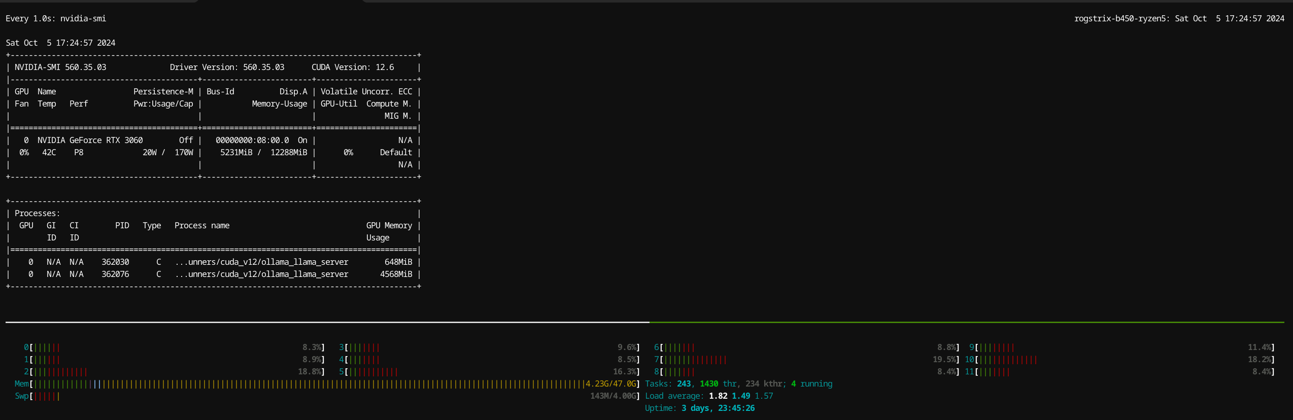 With the exception of having Ollama listening on 0.0.0.0 I used a default install of the latest Ollama with the CUDA 12 drivers that get installed with the shell script