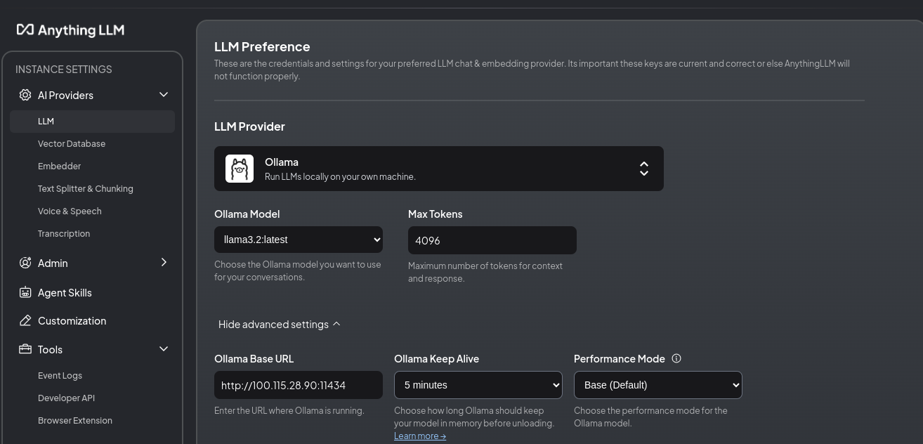 AnythingLLM Desktop is distributed as an AppImage which installed on an Ubuntu 24.40 desktop without a GPU knowing I would point at a remote Ollama server over my tailnet given it is on a different wireless network.