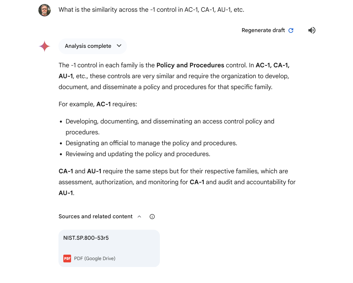 Anyone that has has had to suffer through NIST 800-53 knows the first control is Policies and Procedures. I was curious if any of the LLM's would get this so I came up with this not great prompt to see how they would respond.