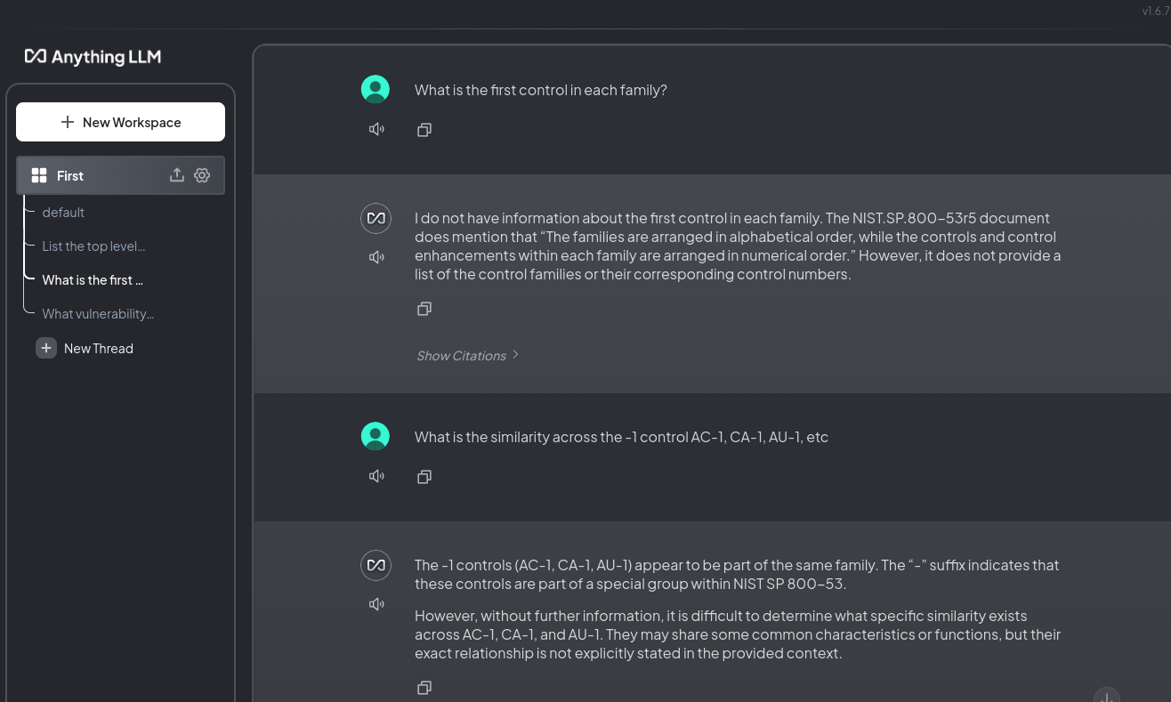 I got two different answers from AnythingLLM, the first with examples of controls.